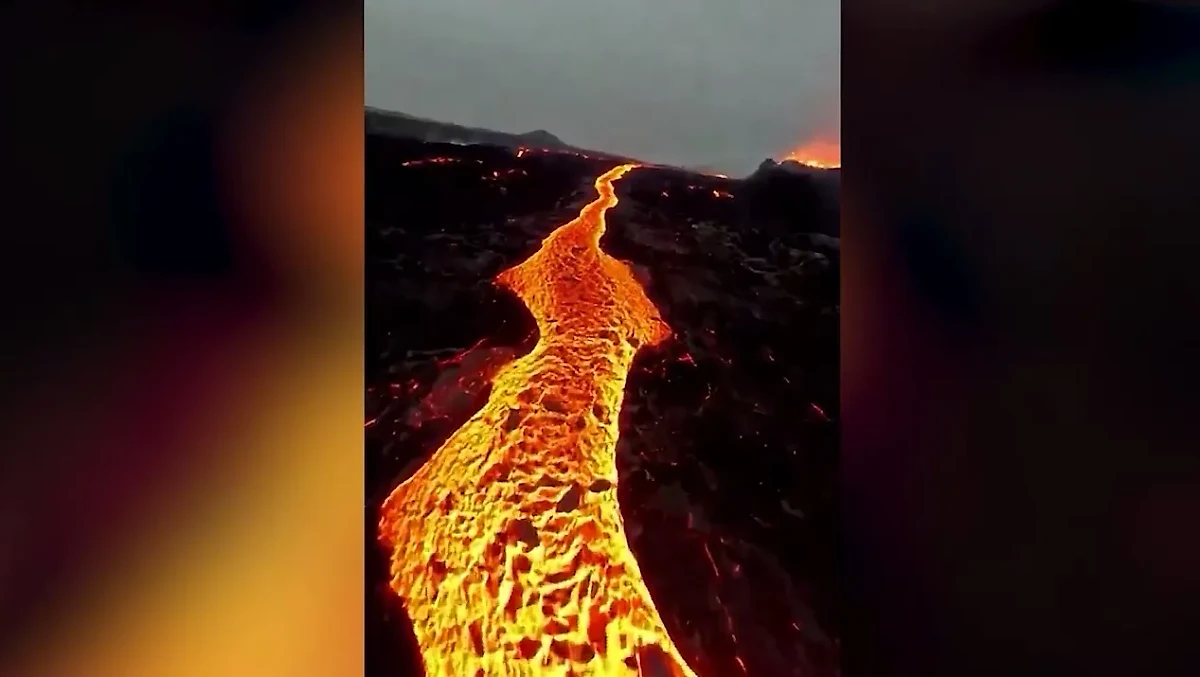 Запечатлеть извержение лавы удалось местным экстремалам. Они подняли над жерлом квадрокоптер, который снял эпичные кадры ценой своей жизни. На записи видно, как в кратере бурлит ярко-оранжевая магма, истекающая ручьями.