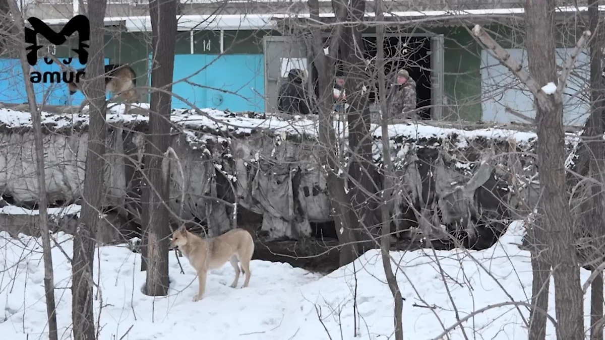 Кадры с места происшествия в Хабаровске, где псы загрызли местного жителя. Видео © t.me / Amur Mash