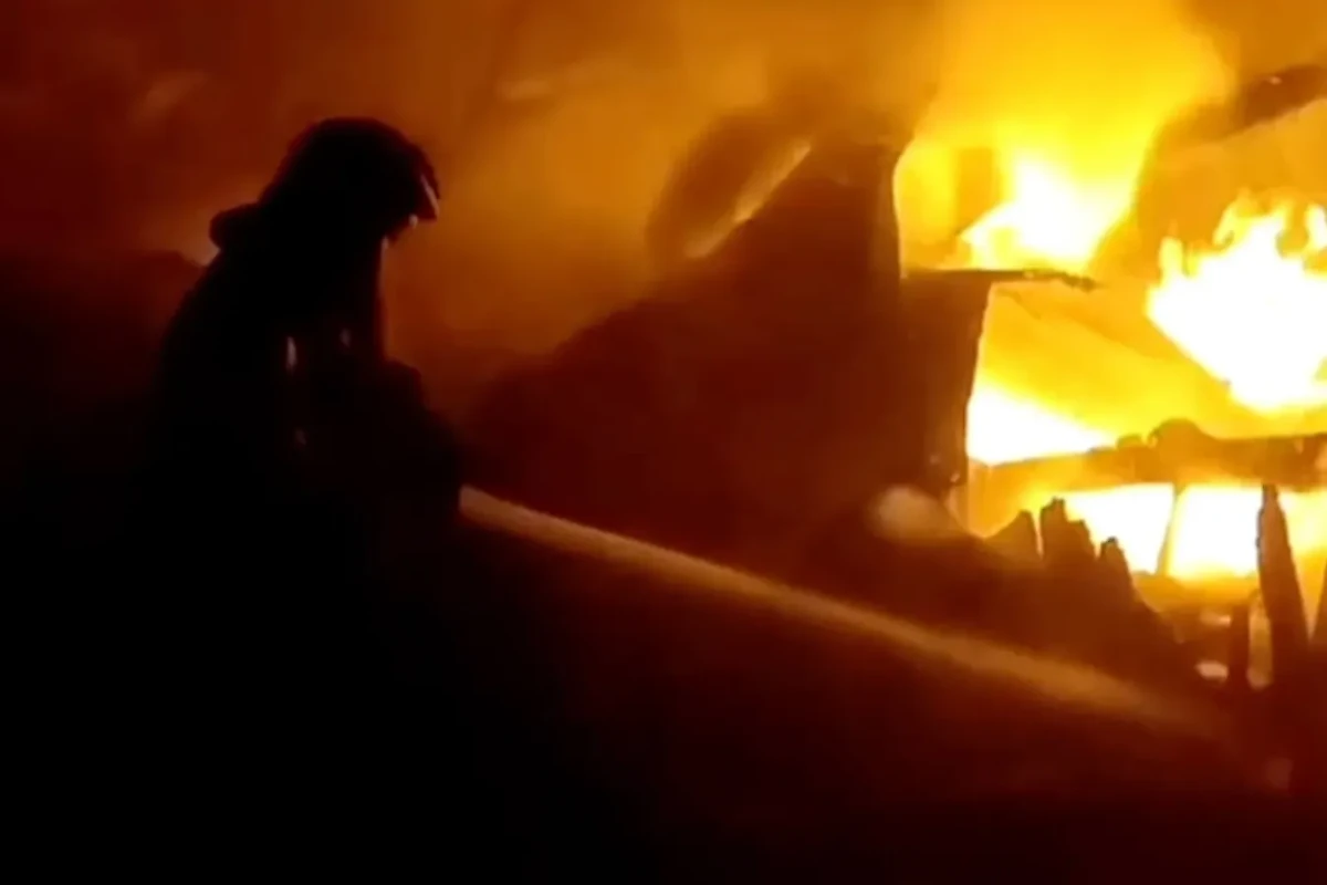 В Новгородской области горит ангар на пилораме. Видео © t.me / МЧС России