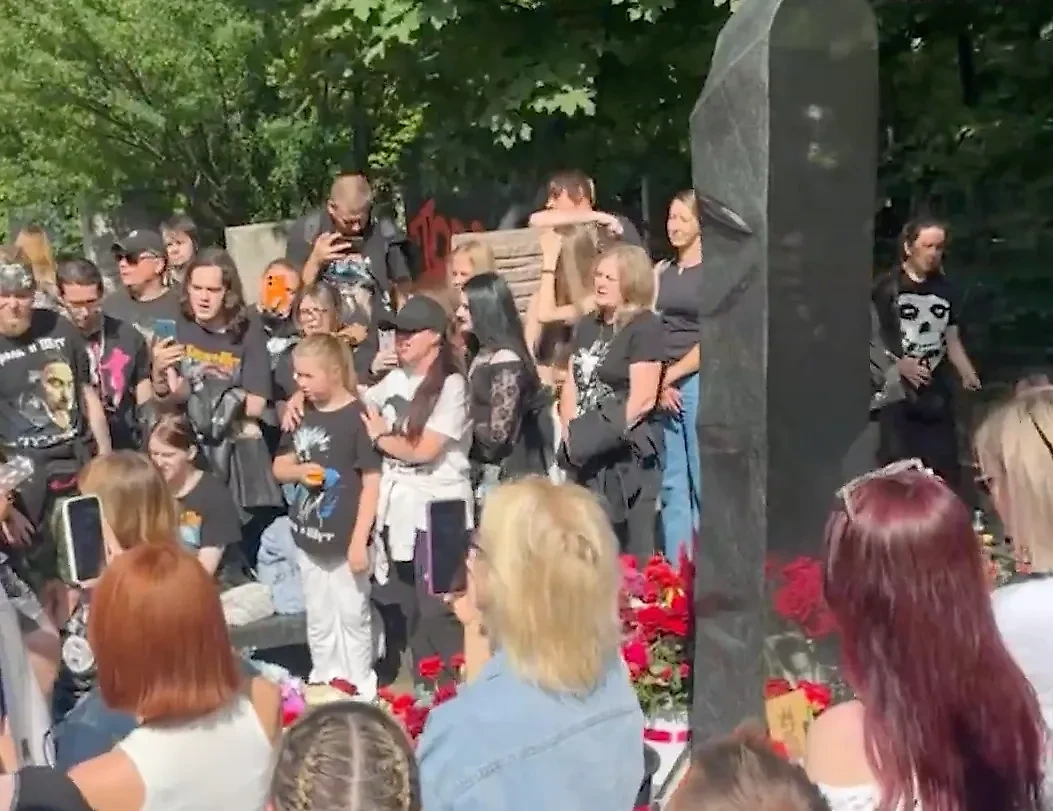 Фанаты на могиле Михаила Горшенёва в день его рождения. Видео © Telegram / Mash на Мойке