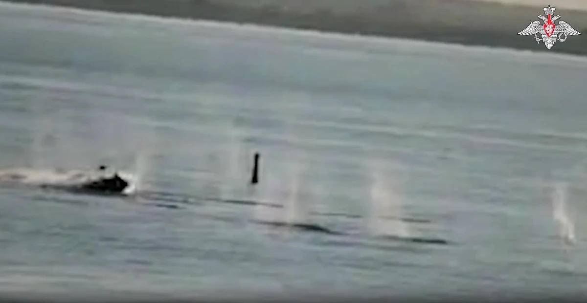 На кадрах видно, как винтокрылый дуэт взмывает над целями, после чего морскую гладь разрезают языки красного пламени и чёрный дым. После выполнения задания вертолёты вернулись на место дислокации.