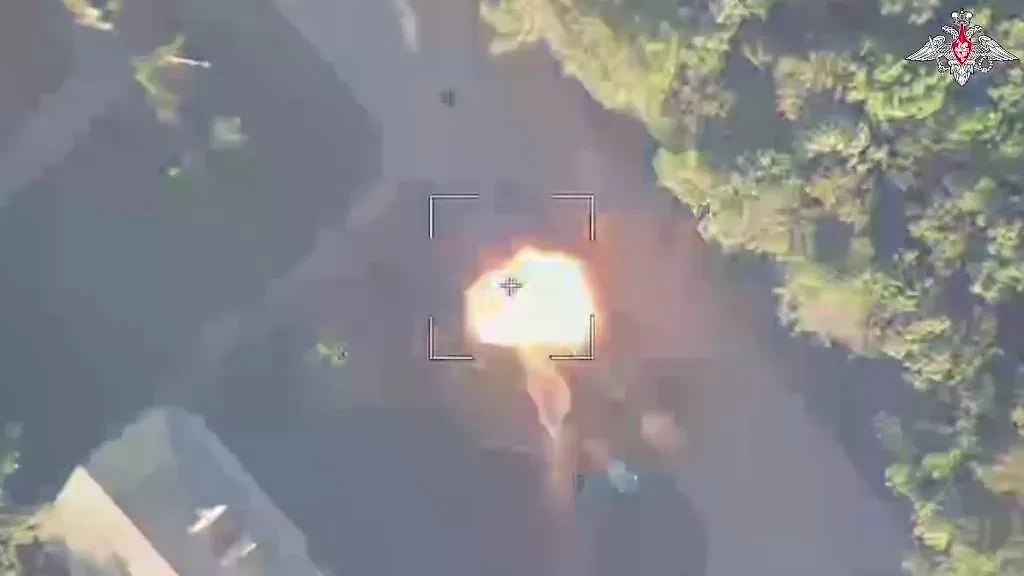 "Военнослужащие группировки войск "Север" выявили переброску танка ВСУ с использованием трала. После анализа полученных разведданных было принято решение об огневом воздействии по боевой машине противника", — отметили в пресс-службе ведомства.