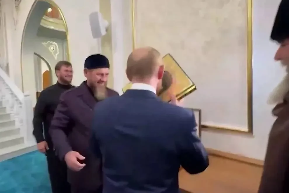 Путин целует Коран в мечети пророка Исы в Грозном. Видео © Telegram / Kadyrov_95