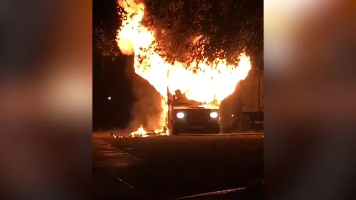 В Москве взорвался и загорелся дом на колёсах. Видео © SHOT