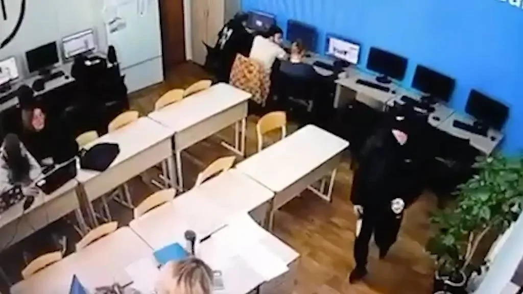 Момент нападения отчисленного студента на преподавательницу. Видео © VK / «Типичный Лангепас»