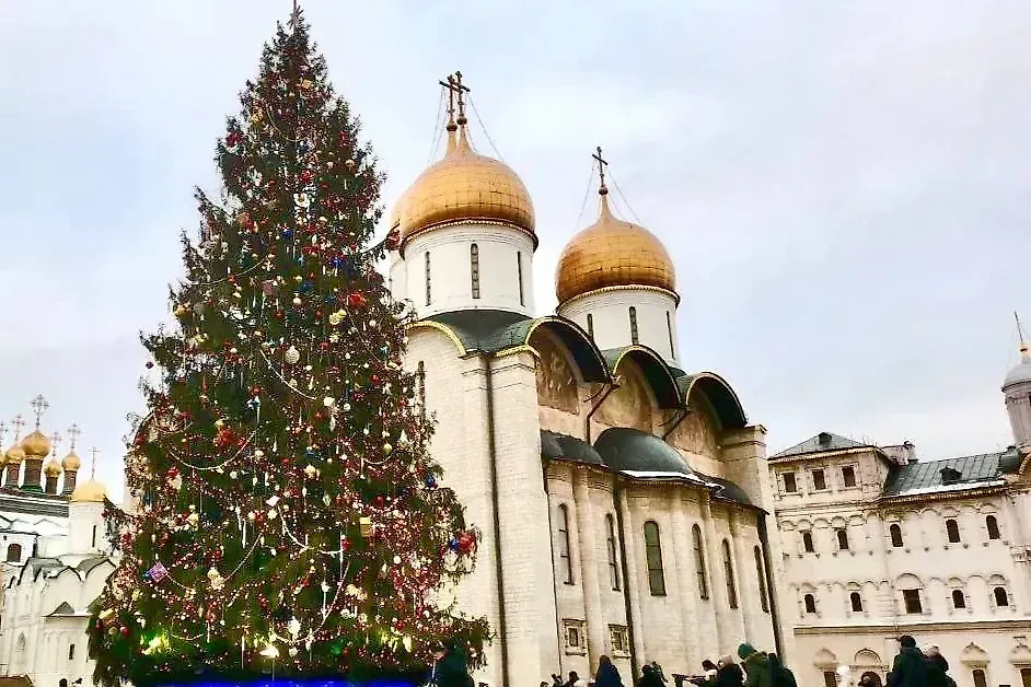 На Соборной площади в Кремле нарядили главную ёлку России. Обложка © Life.ru