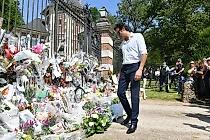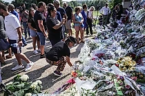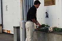 Москвичи несут цветы к Посольству Франции в память об Алене Делоне