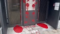 Двери посольства Литвы в Москве облили красной краской
